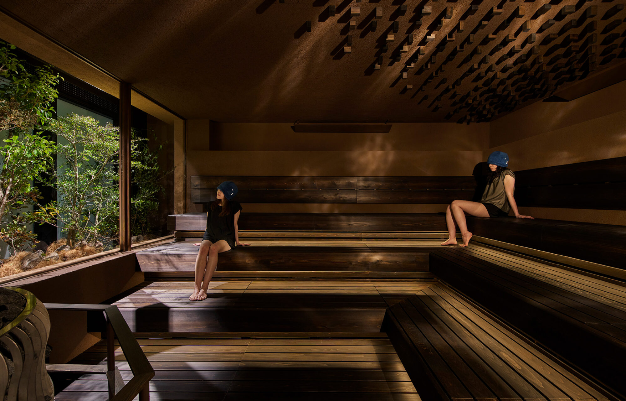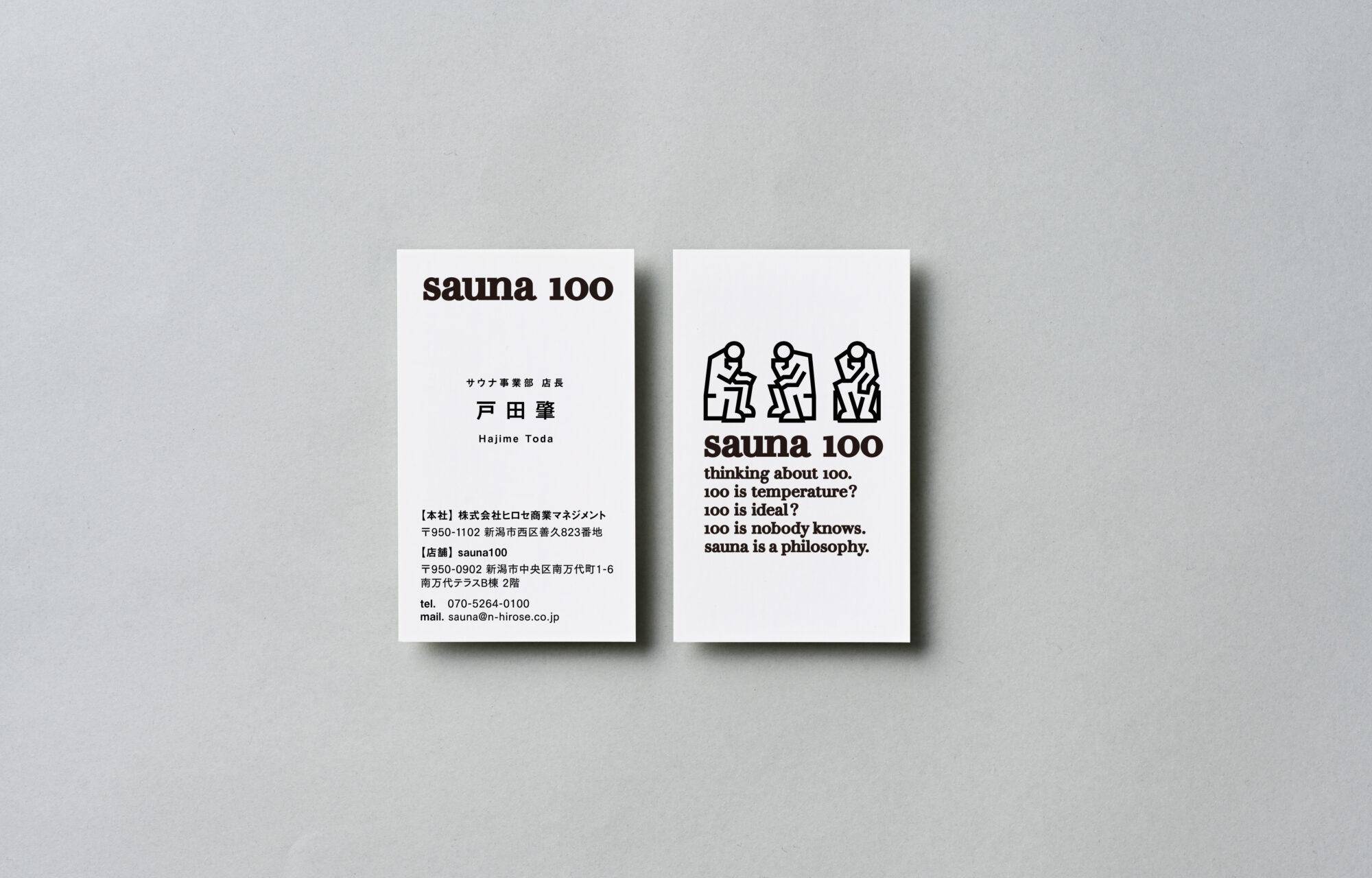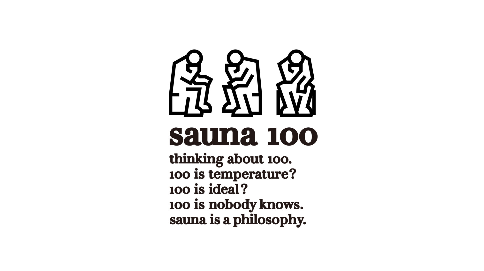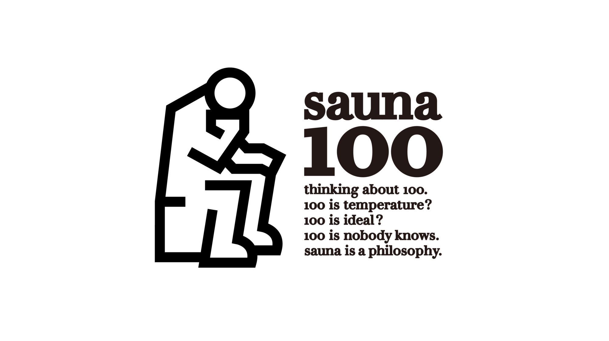 ロゴは、サウナに入っている人が、まるで「考える人」のように思索にふける姿をモチーフに。サウナは、ただ汗をかくだけの場所ではなく、自分と向き合い、心を整え、さまざまな思考が巡る特別な時間。そしてこの施設自体もまた、「本当に心地よいサウナとは何か?」を徹底的に考え抜くところから生まれている。サウナに入る人の静かな姿に、思索する人のポーズを重ね合わせることで、体だけでなく心も整う場であることを象徴。